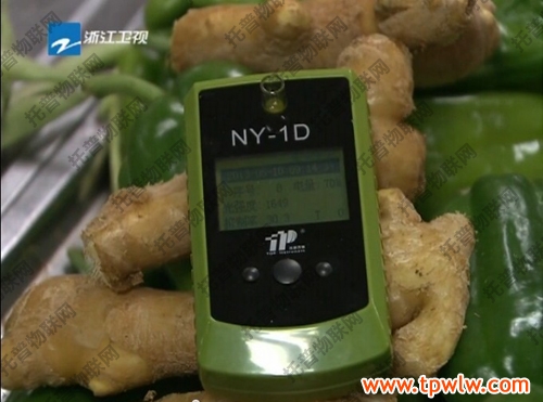圖為:浙江新聞聯(lián)播報(bào)道正在檢測(cè)蔬菜農(nóng)殘的攤主