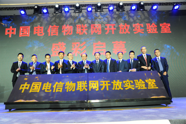 托普云農(nóng)董事長陳渝陽(右一)在中國電信物聯(lián)網(wǎng)開放實驗室啟動儀式上