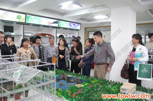 在三樓樣品室,“托普農業物聯網”吸引了新疆客人們的目光,惟妙惟肖的“農業物聯網”沙盤直觀展示了公司領先的“農業物聯網”技術應用。