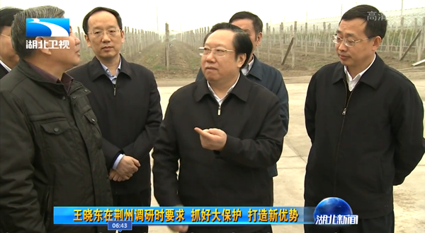 2016年11月,湖北省委副書記、代省長王曉東在荊州市市委書記李新華、市長楊智等領(lǐng)導(dǎo)陪同下蒞臨金秋農(nóng)業(yè)智能化葡萄示范基地調(diào)研現(xiàn)代農(nóng)業(yè)發(fā)展情況。饒有興趣的參觀了"智能化中心"水肥一體化設(shè)施,了解托普云農(nóng)水肥一體化的精準生產(chǎn)過程。