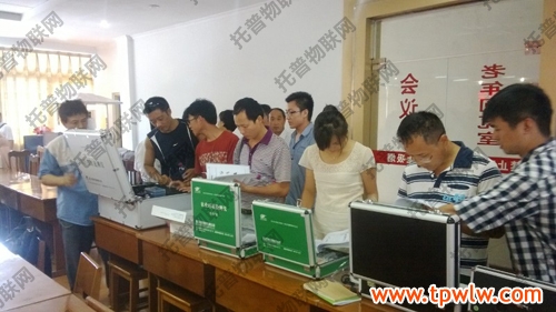 圖為:托普銷售代表(右一)和技術員(左三)向培訓人員講解公司產品
