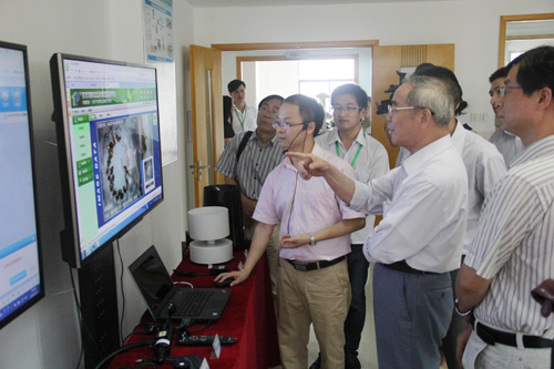 圖為:調研組觀看托普儀器信息化系統