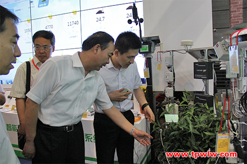 圖為:安徽省農委孫正東主任觀摩托普云農傳感器設備