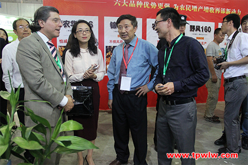 種子雙交會期間,農業部種子管理局局長張延秋、副局長馬淑萍一行還帶領前來參加中國-阿根廷種業交流峰會的阿根廷代表團參觀了托普云農展區。阿根廷國家種子研究所董事會主席拉威諾勒 萊英姆多農業工程師仔細觀摩了公司所展出的種子檢驗儀器和系統,并與陳渝陽總經理進行交流。