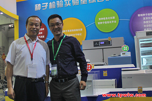 托普云農展出了自主研發生產的種子檢驗儀器和實驗室儀器。農業部種子管理局張延秋局長、杭大鵬書記一行,甘肅省種子管理局常宏局長一行先后蒞臨托普展區參觀指導,并與陳渝陽總經理進行交談,對托普云農在“互聯網+種業模式轉型變革”領域做出的成果給予肯定。