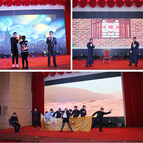 精彩紛呈的“新故事,新起點”2016新春年度盛典在四位支持人的深情開場中拉開序幕。熱情歡樂《金獅送福》領(lǐng)先開演,為大家送來了新年的祝福;勁舞《說愛就愛》,激情火爆,樂觀向上的精神風(fēng)貌展現(xiàn)得淋漓盡致;研發(fā)團(tuán)隊的舞臺劇《電影院那些事》演繹了公司研發(fā)人員豐富飽滿的內(nèi)心世界。一首《飄雪》,瞬間將我們就帶入了純情浪漫模式。古箏演奏,優(yōu)雅悠揚;激情昂揚的《保衛(wèi)黃河》將整個晚宴推向高潮;銷售部老男人們的《群魔亂舞》讓大家更是樂的開懷暢飲!期間的互動環(huán)節(jié)及歡樂大抽獎讓全場氛圍熱烈而又充滿期待,高潮迭起!
