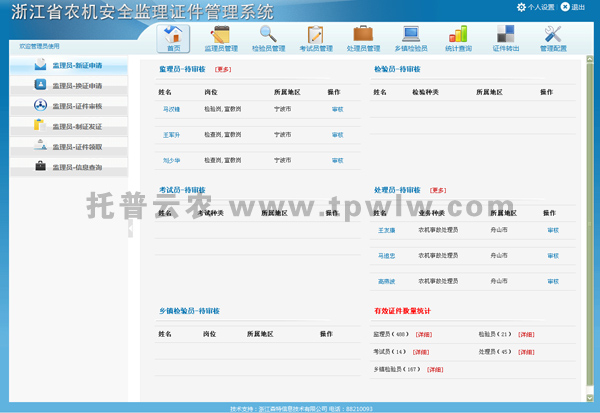 2、農機辦證系統: